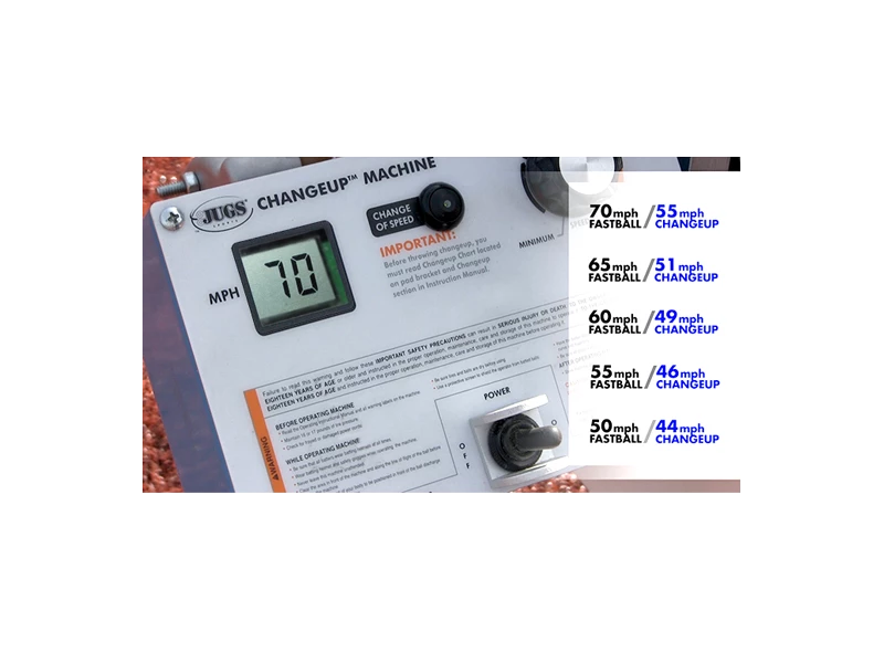 CHANGEUP FEATURE! Fastballs up to 70 mph and changeups at speeds as low as 44 mph. Now available with or without transport cart.