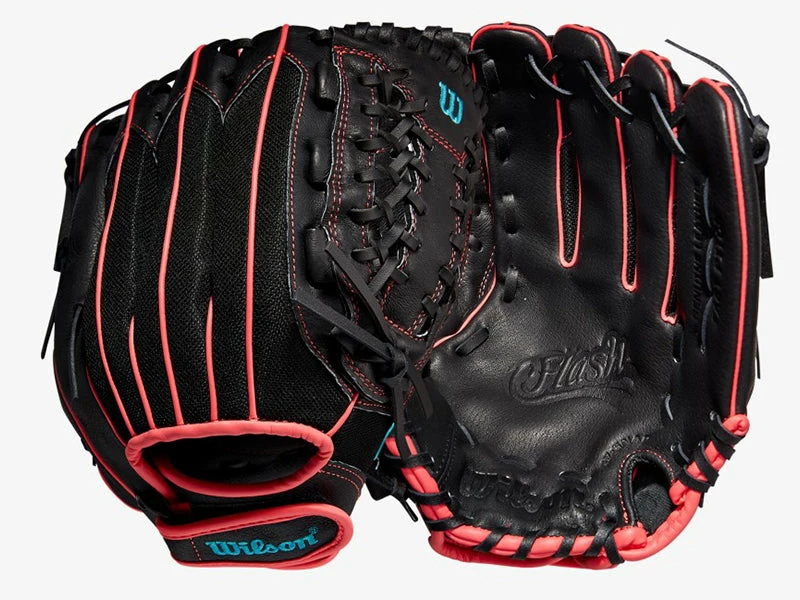 This 12″ fastpitch glove is perfect for young players getting their start in the game. A fun black, grey and purple color scheme and Closed V-Laced Web design make it perfect for players all over the diamond.